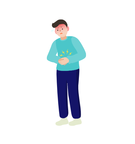 구토와 설사 사이 또는 함께 나타나는 증상으로, 속이 메스껍고 복부에 압박감을 느낍니다. 이는 위장 점막에 염증이 발생하며 위 기능이 저하되기 때문에 생기는 증상입니다.