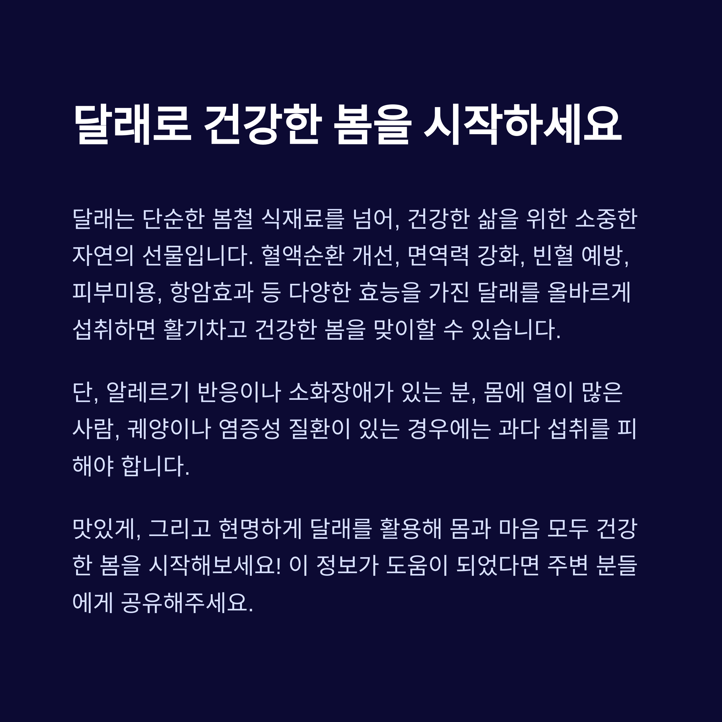 맛있게, 그리고 현명하게 달래를 활용해 몸과 마음 모두 건강한 봄을 시작해보세요!