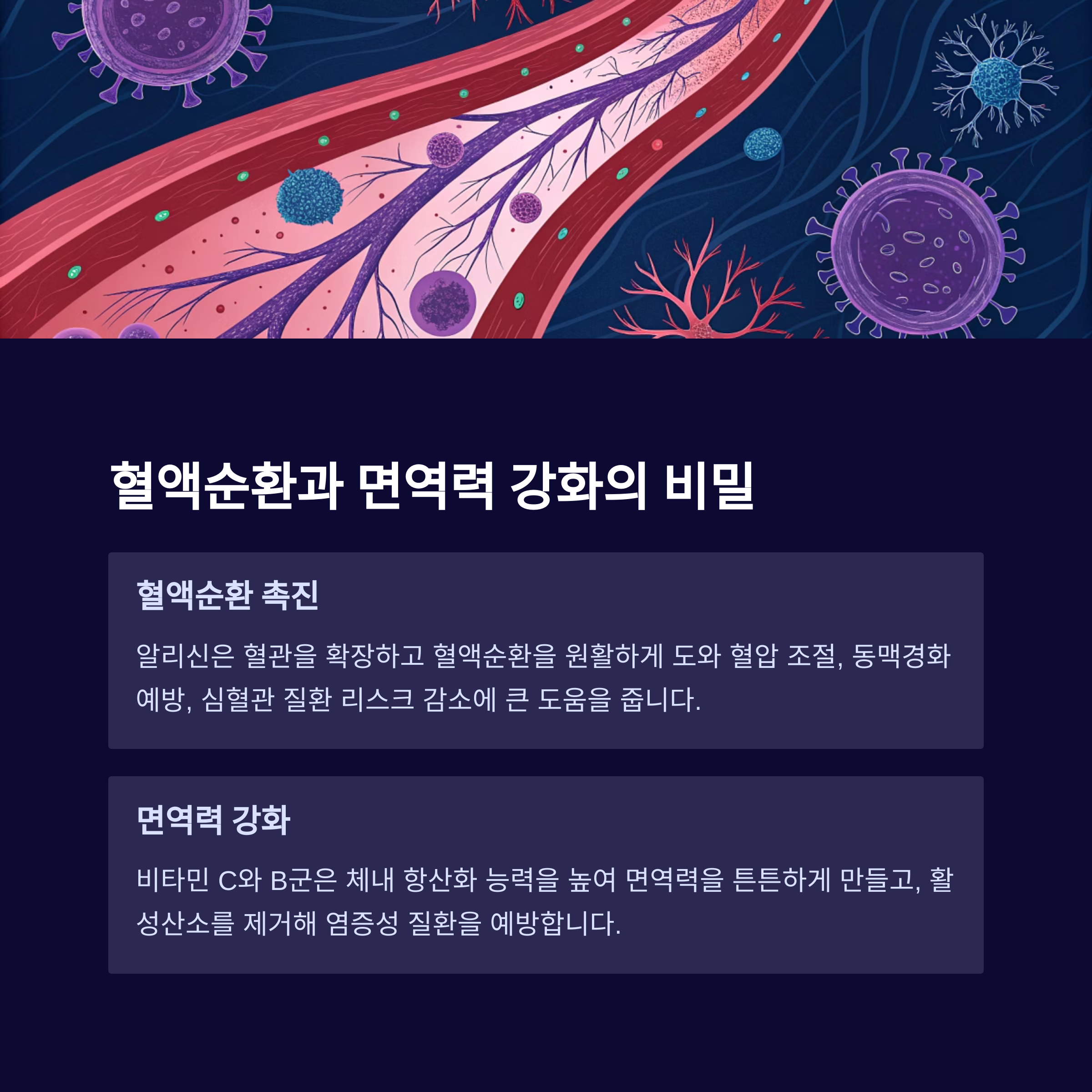 - 알리신: 혈액순환 촉진 및 항균 작용