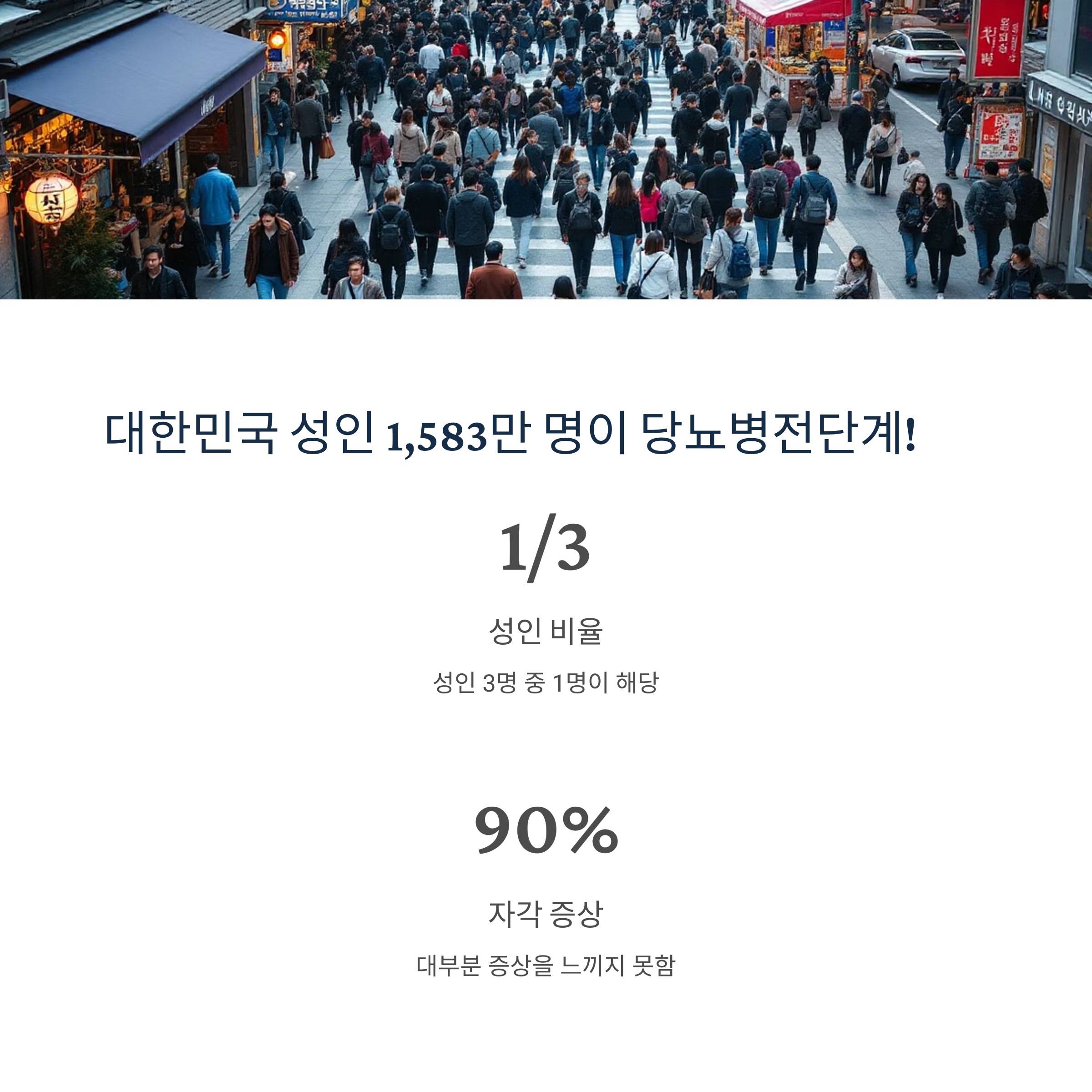 대한민국 국민 약 1,583만 명이 이 단계에 해당되며, 이 중 8%는 매년 당뇨병으로 진행되고 있습니다.