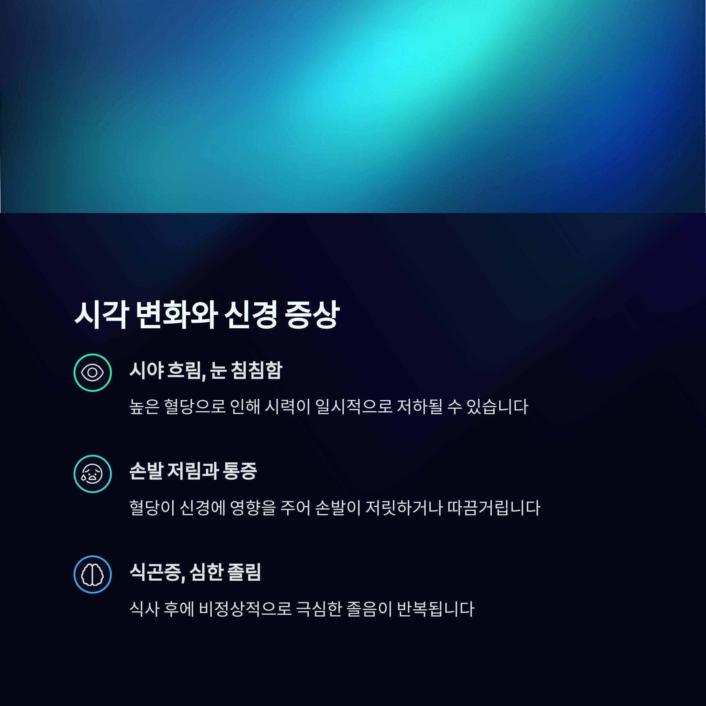 시야 흐림, 손발 저림과 같은 증상은 고혈당이 신체 전반에 영향을 미쳤다는 신호일 수 있습니다.