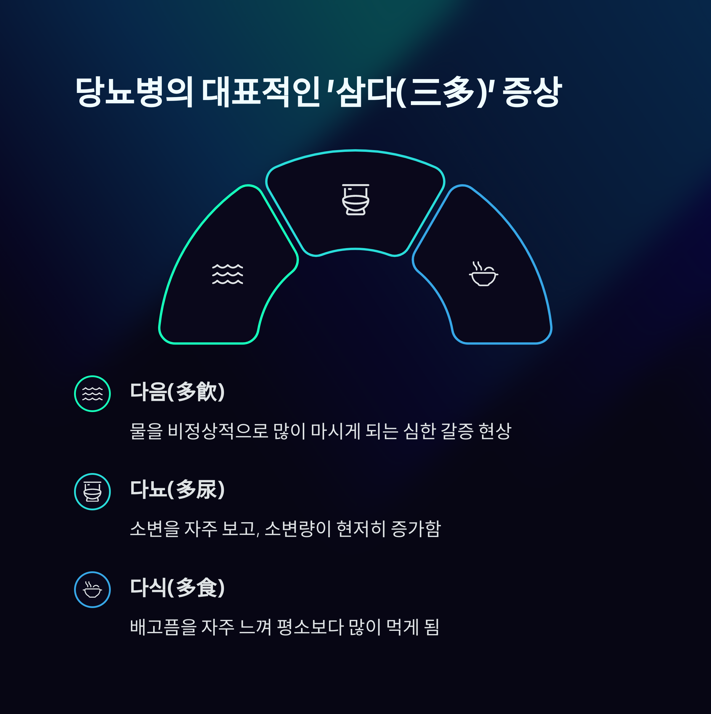 삼다 증상은 당뇨병 진단의 초기 단서가 되는 핵심적인 세 가지 변화입니다.