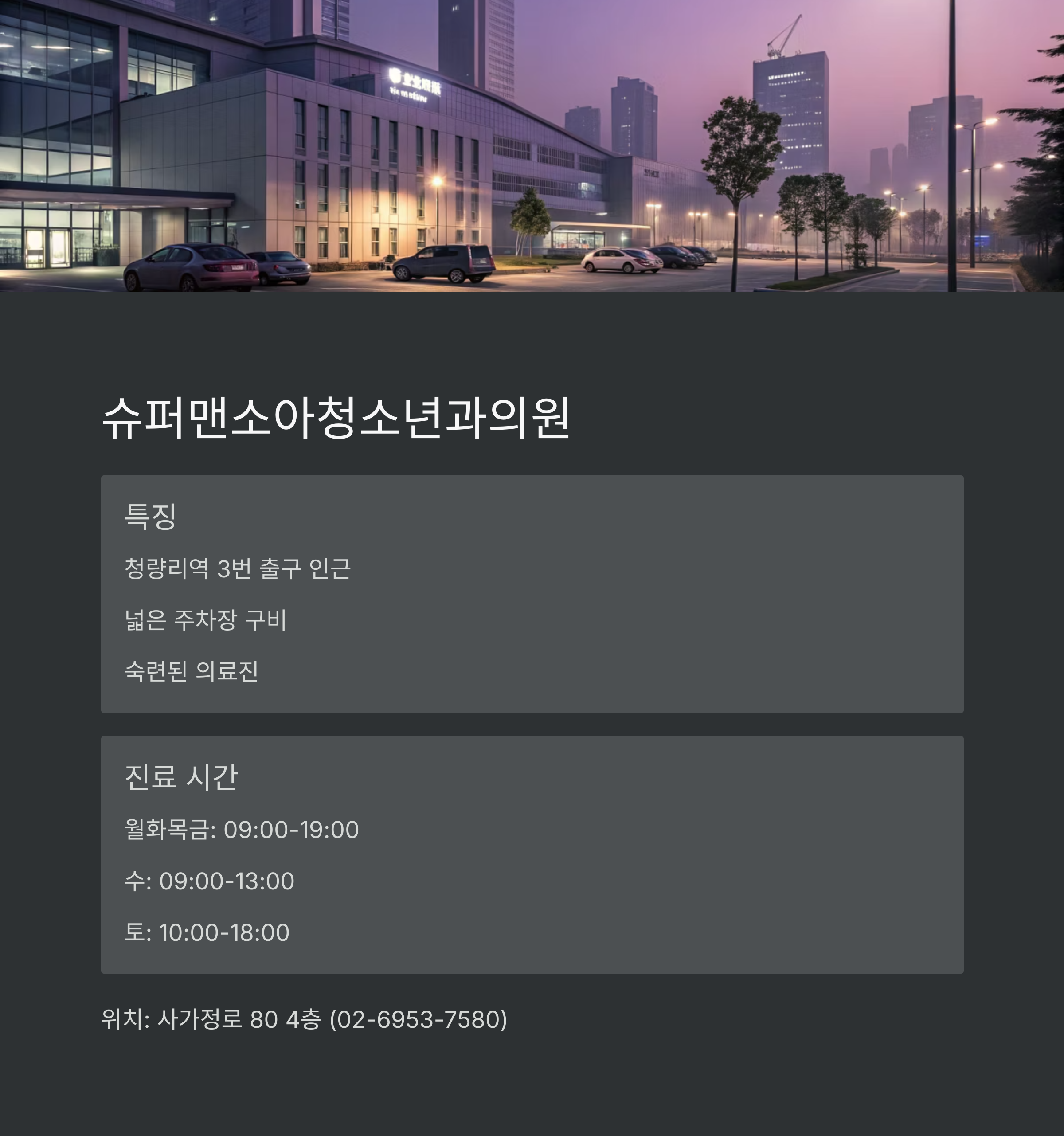 슈퍼맨소아청소년과의원 - 넓은 주차장과 편리한 주말 진료