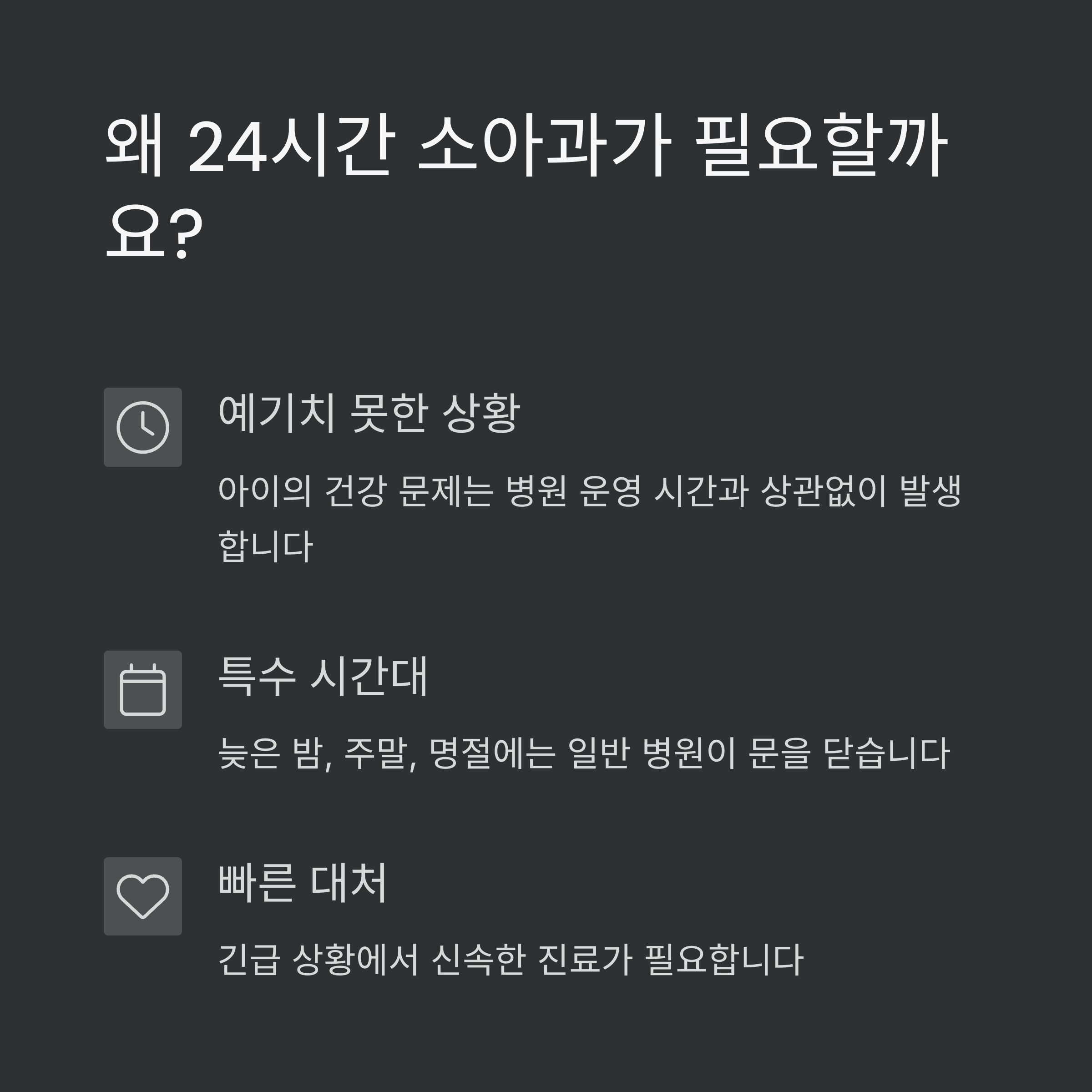 연중무휴로 운영되므로 긴급 상황에서도 안심하고 방문할 수 있어요.
