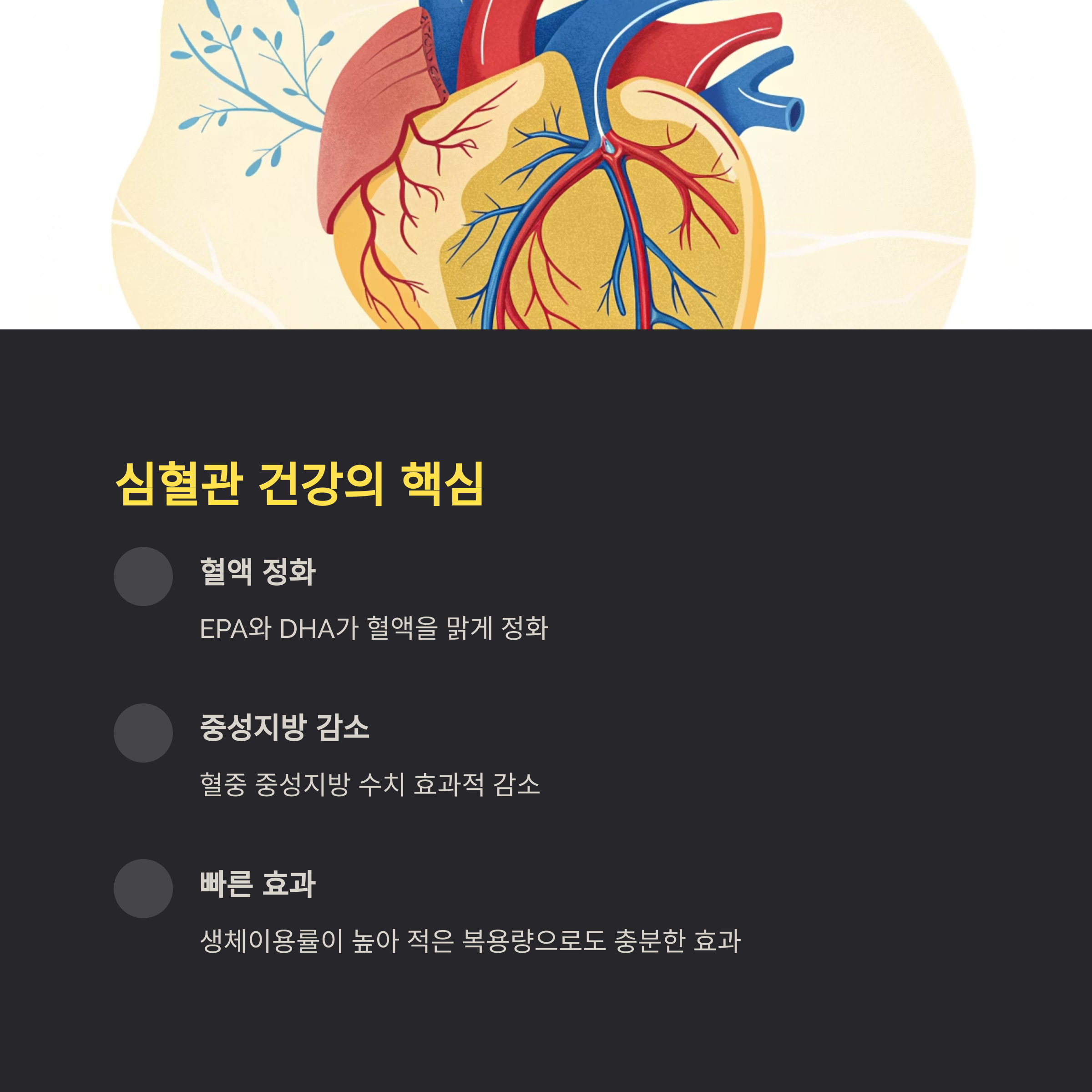 알티지 오메가3의 가장 대표적인 효과는 바로 심혈관 건강에 대한 도움입니다