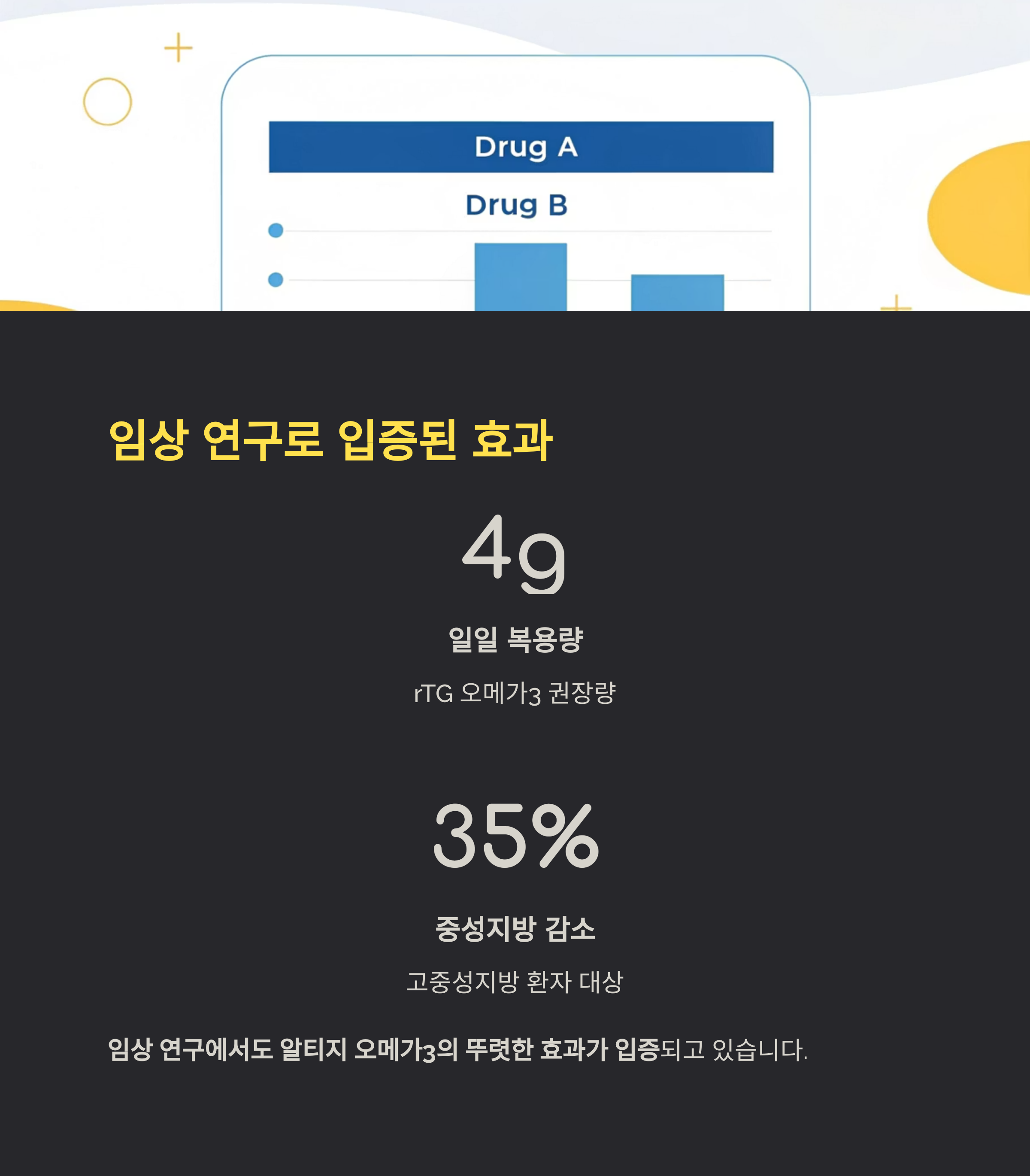 이처럼 임상 연구에서도 알티지 오메가3의 뚜렷한 효과가 입증되고 있습니다