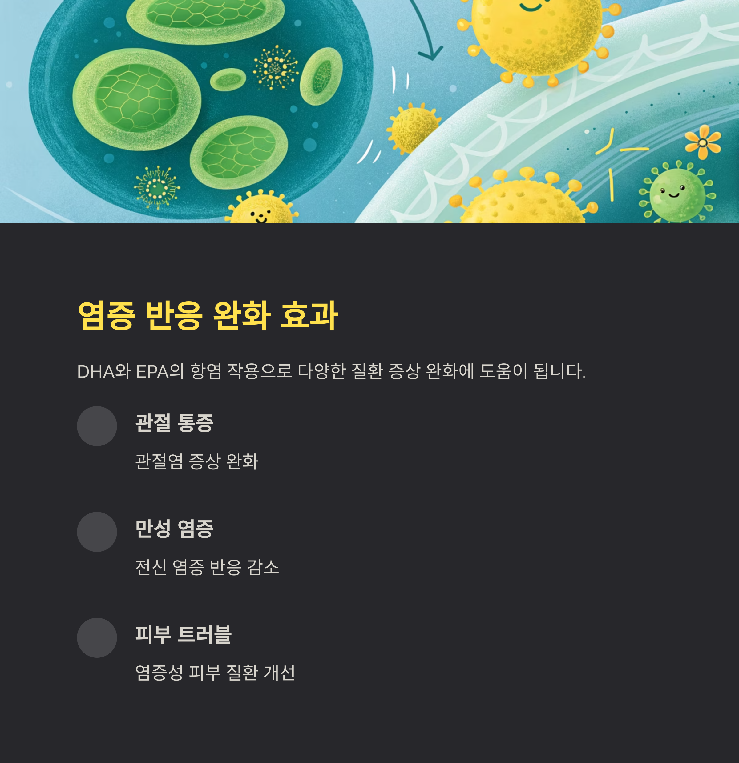 DHA와 EPA는 항염 작용을 통해 관절 통증, 만성 염증, 피부 트러블