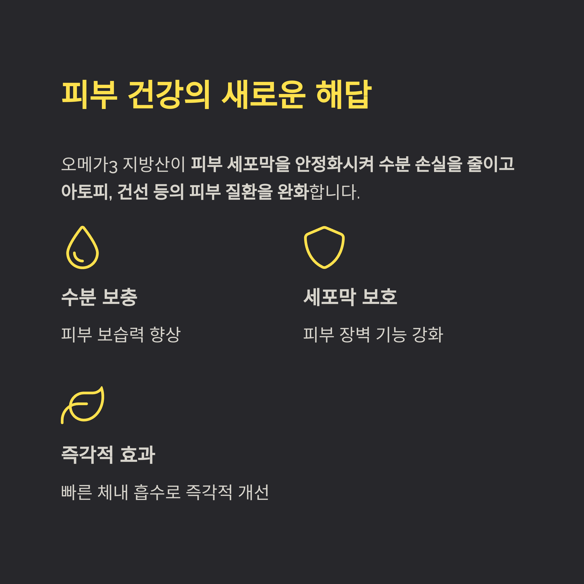 오메가3 지방산은 피부 세포막을 안정화시켜 수분 손실을 줄이고
