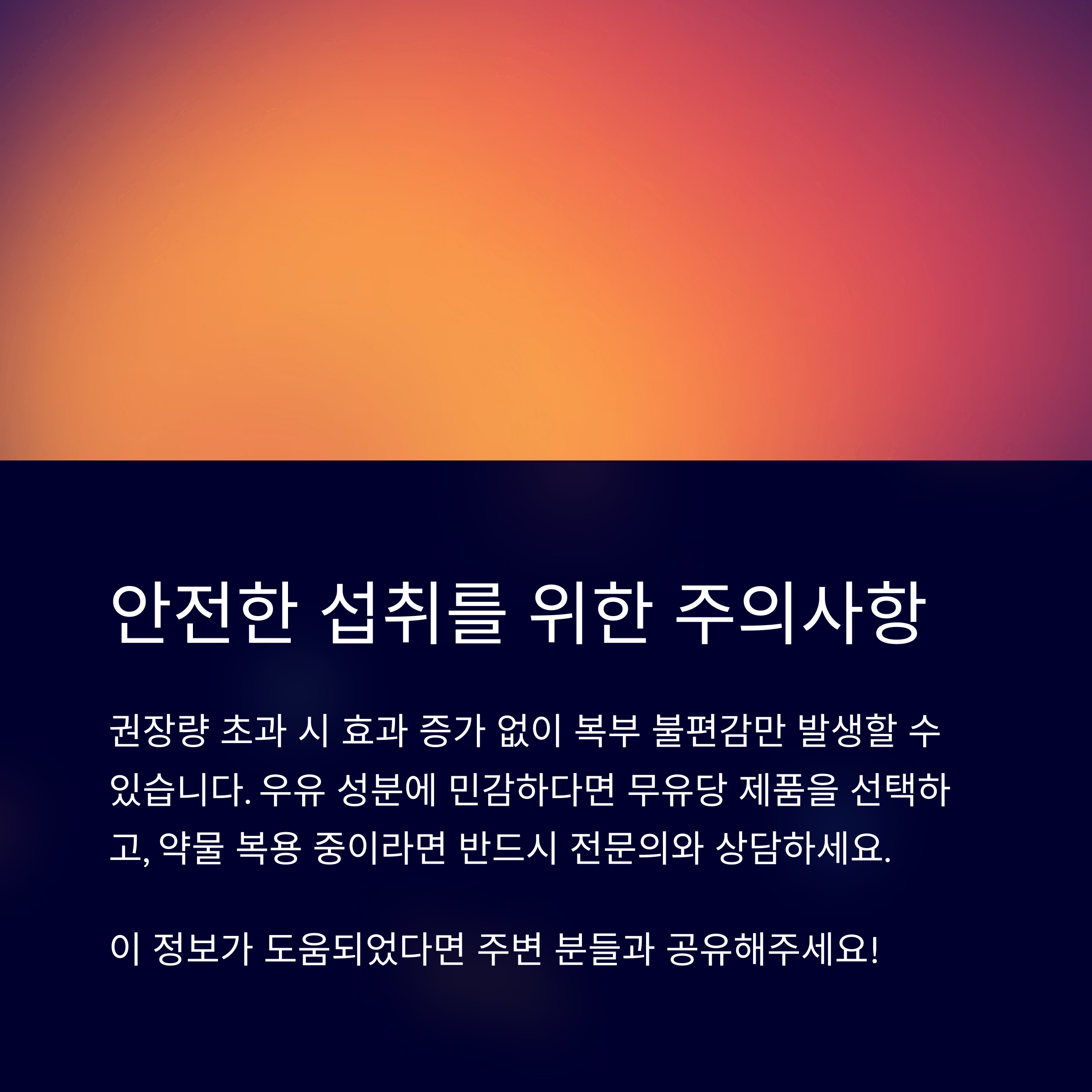 | 권장량 초과 | 효과 증가 없음, 위장 불편 가능성 |