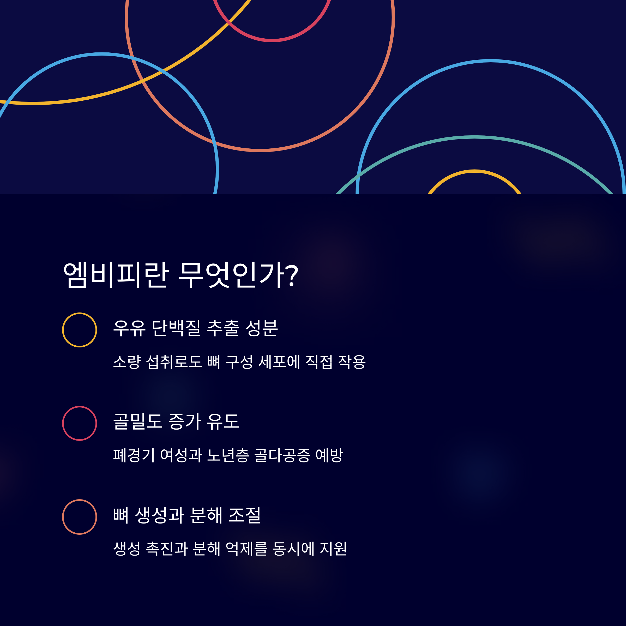 엠비피는 소량으로도 강력한 뼈 건강 개선 효과를 보이는 유청 단백질 유래 성분입니다