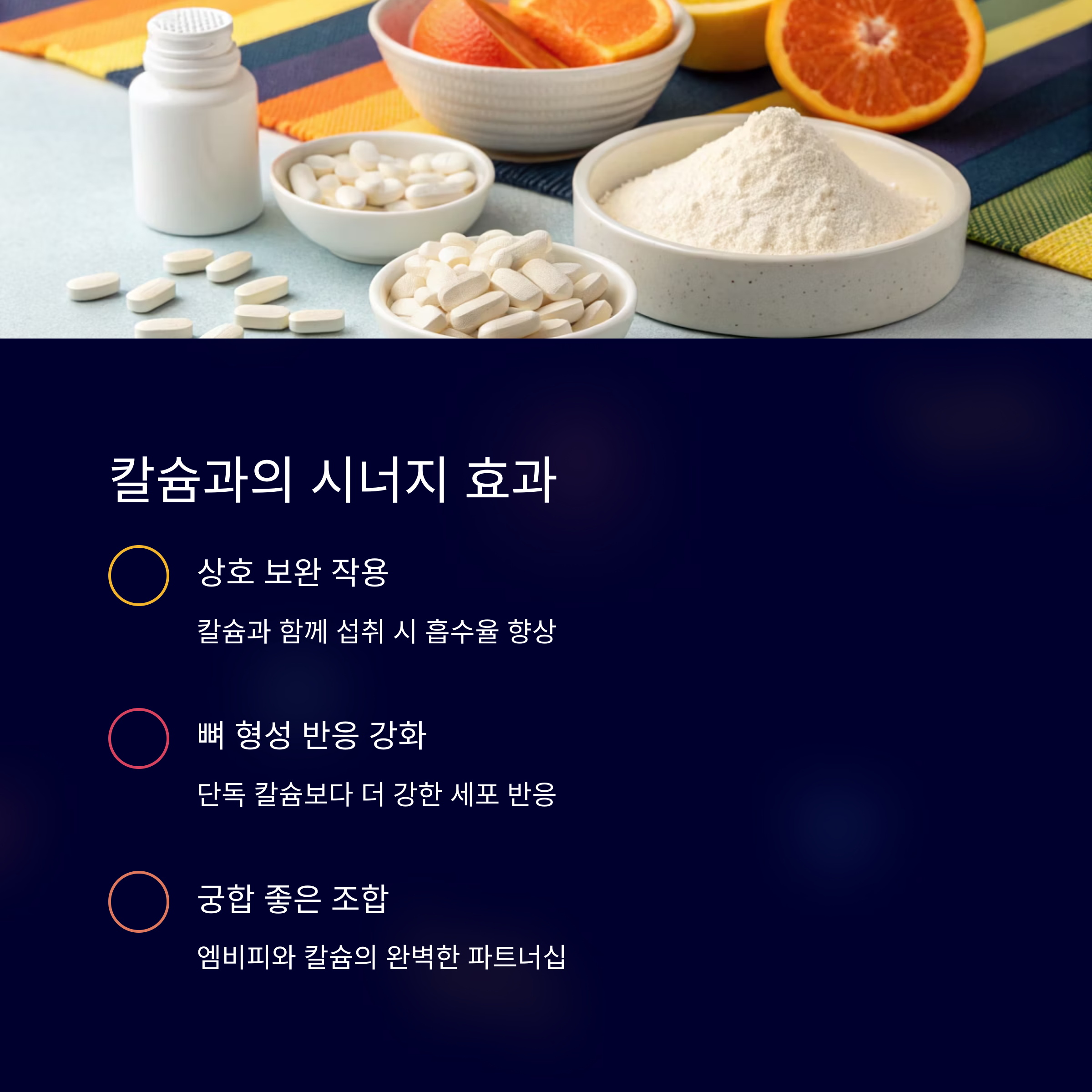 뼈 형성 세포의 반응도 더욱 강해지기 때문에 궁합이 좋은 조합으로 평가됩니다