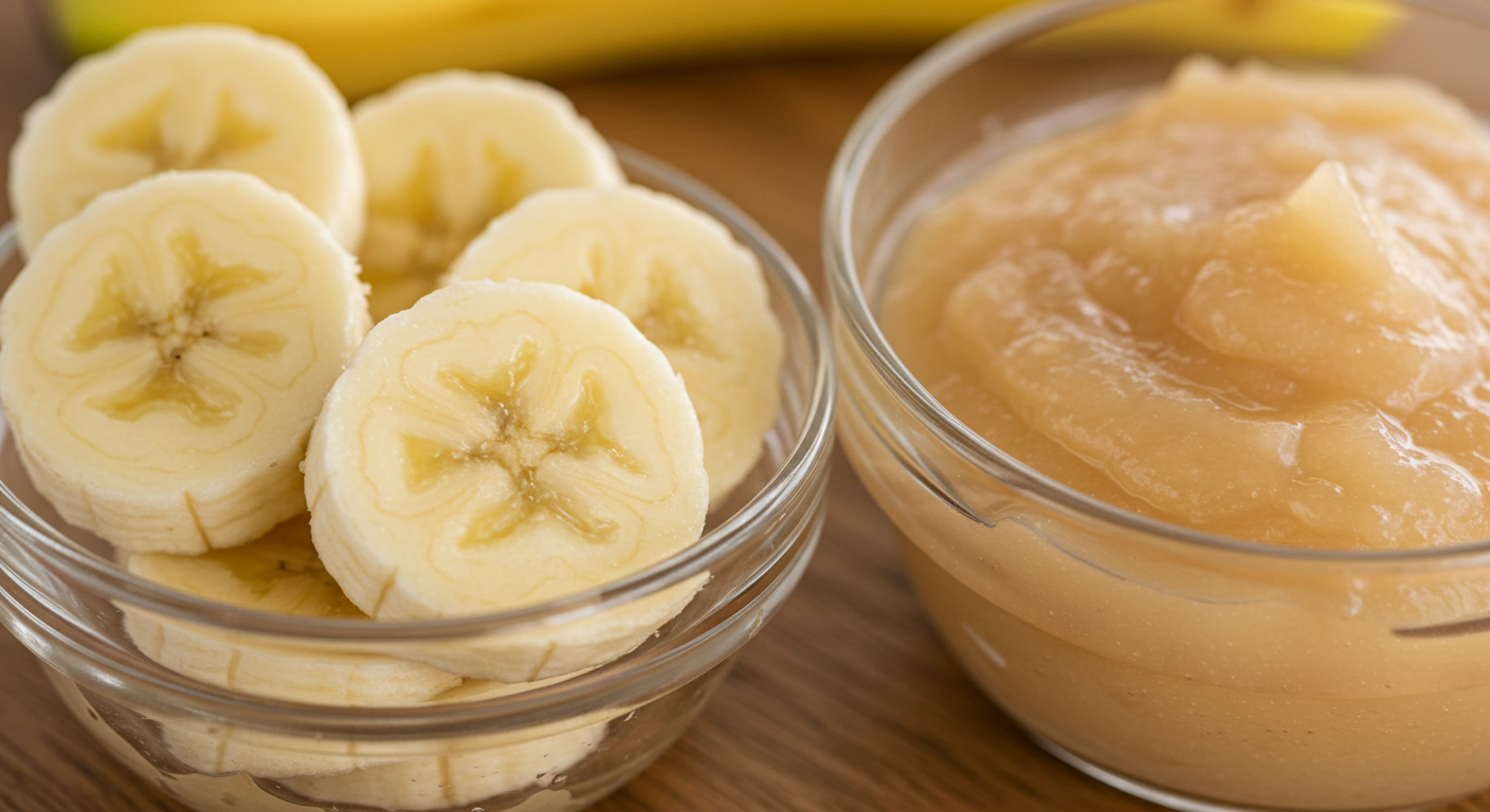 바나나는 수분과 칼륨을 공급하고, 사과는 갈아서 먹으면 변 상태를 조절하는 데 도움이 됩니다.