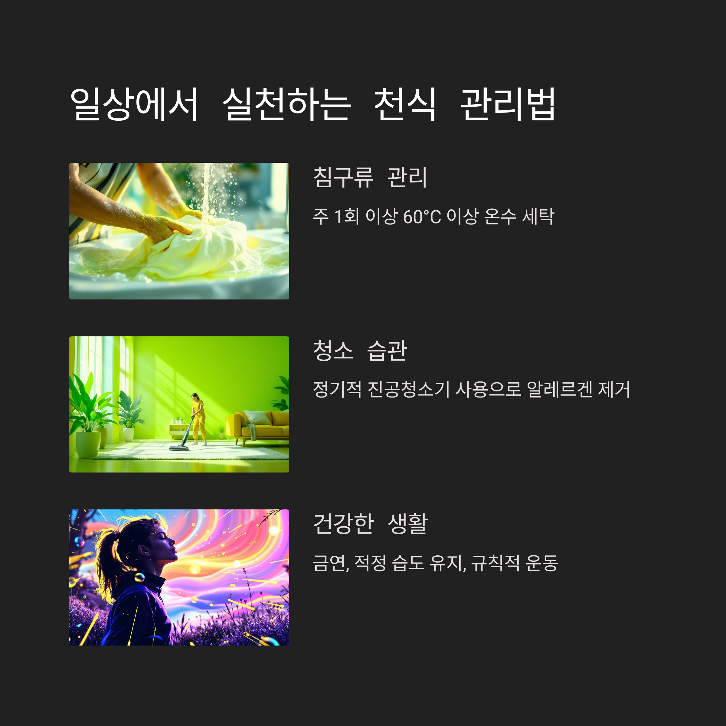 | 알레르기 항원 회피 | 반려동물 털 방치 |