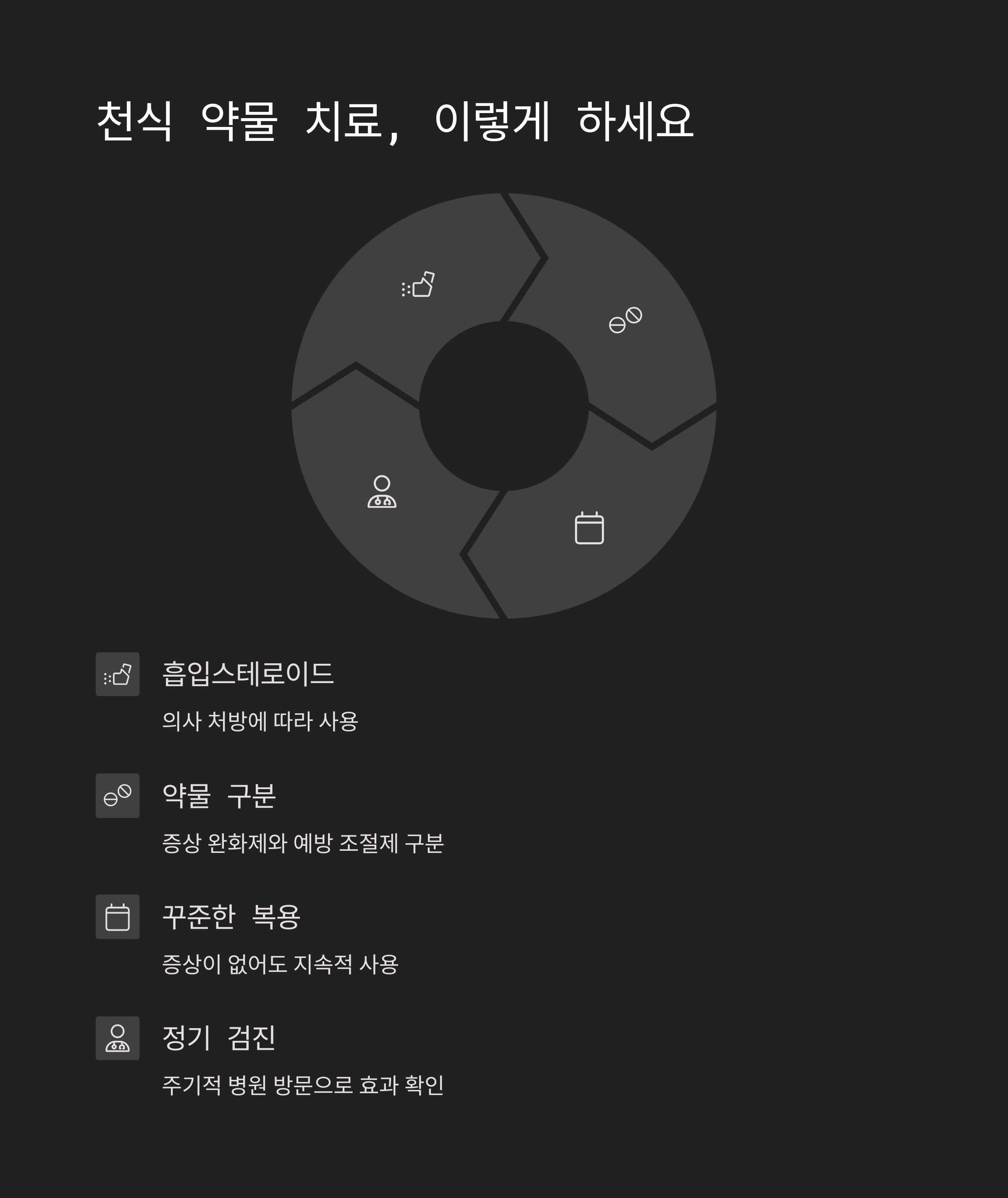 | 흡입제 꾸준히 사용 | 증상 없다고 약 중단 |