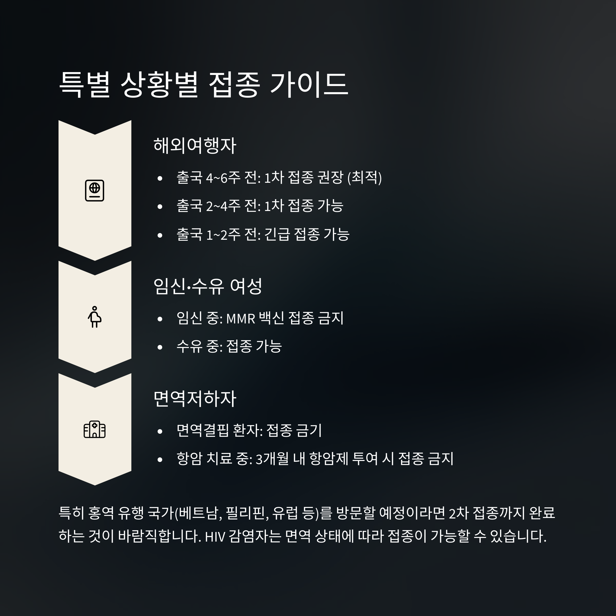 특별 상황별 접종 가이드