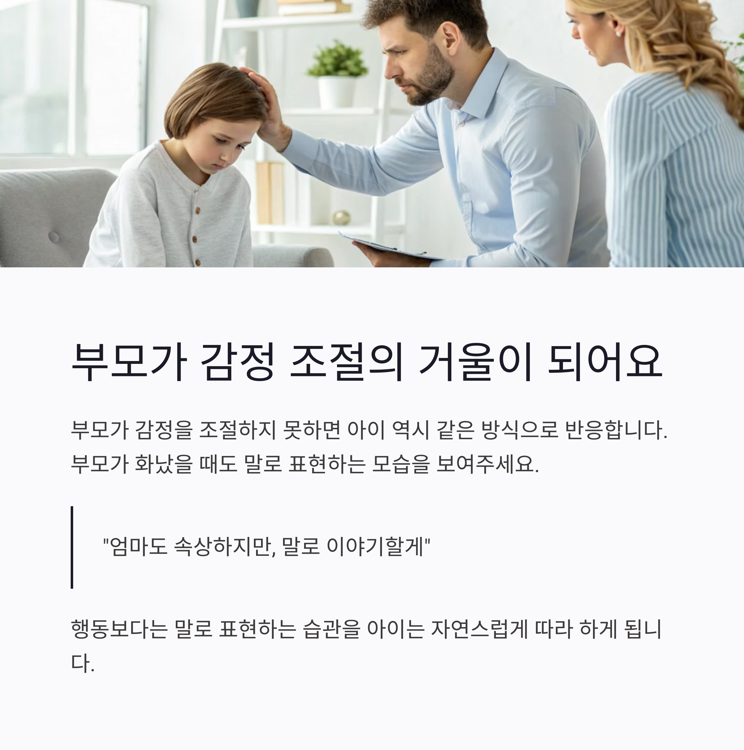 부모가 감정을 조절하지 못하면, 아이 역시 같은 방식으로 반응합니다.