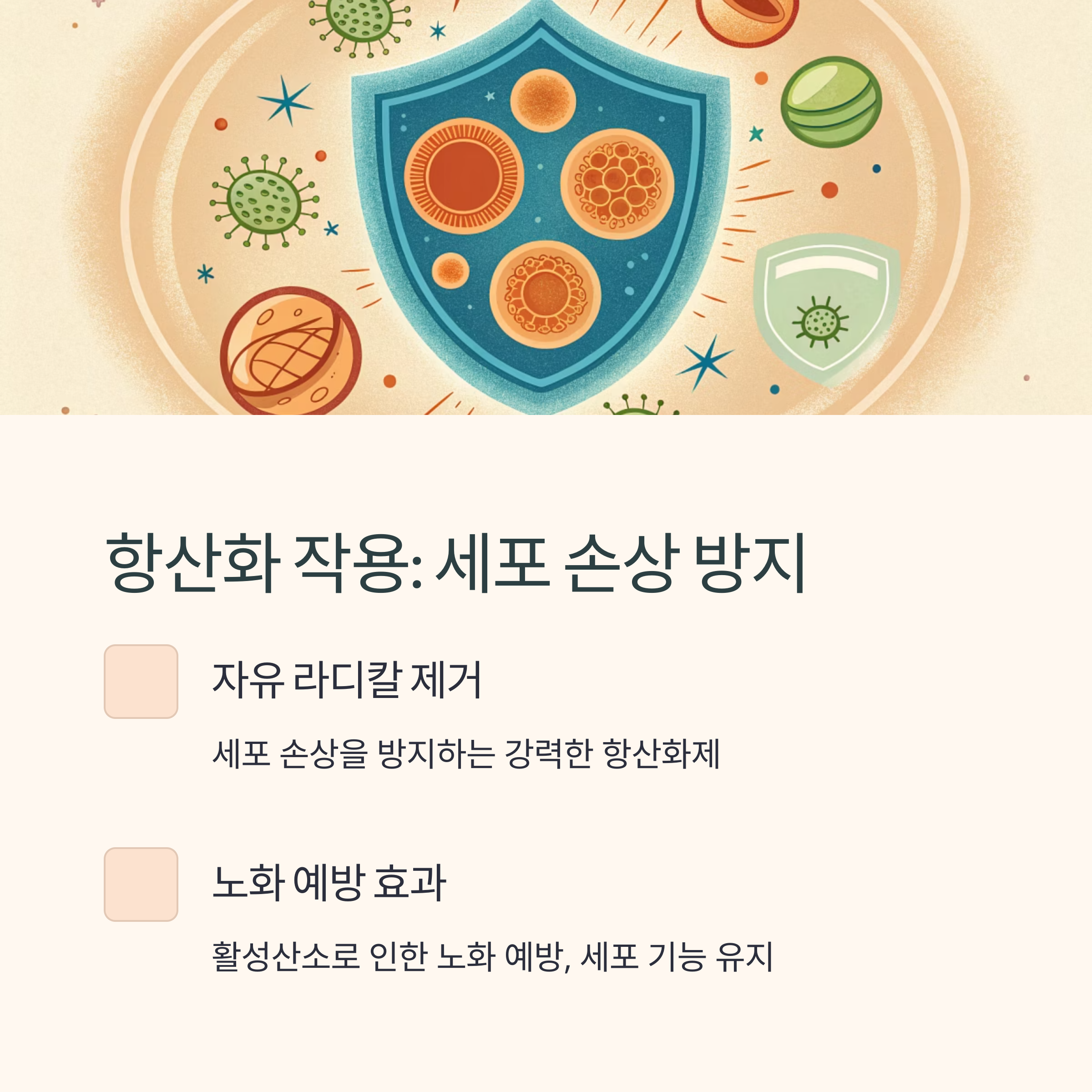 특히 활성산소로 인한 노화 예방, 세포 기능 유지에 중요하며,